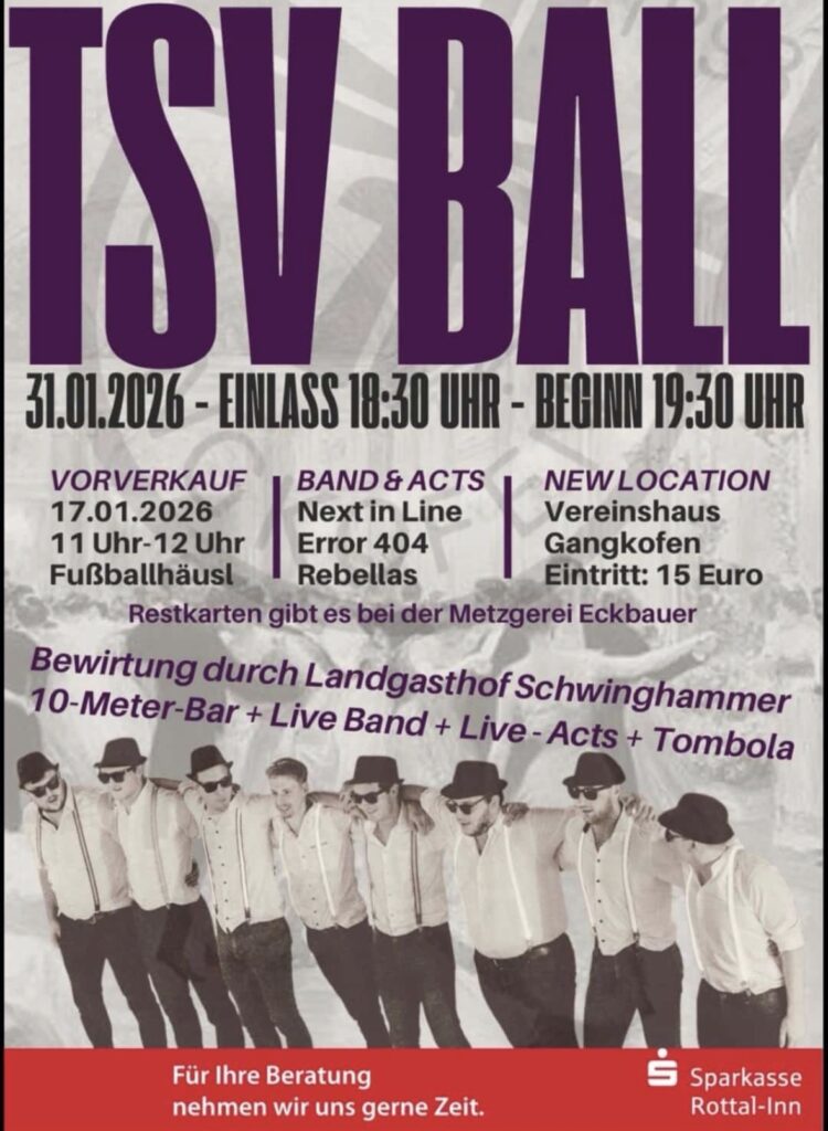 Nach langer Zeit findet der TSV Ball 2026 im Vereinshaus in Gangkofen statt.